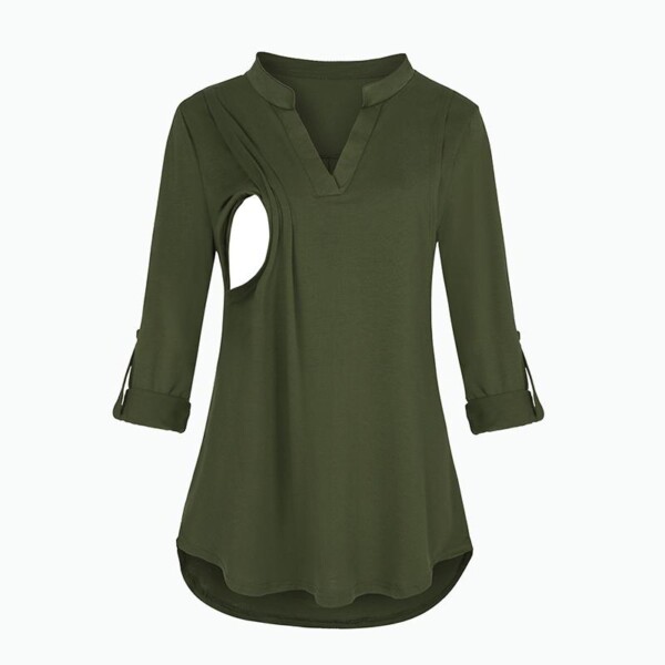Solid V-neck Breastfeeding Maternity Top