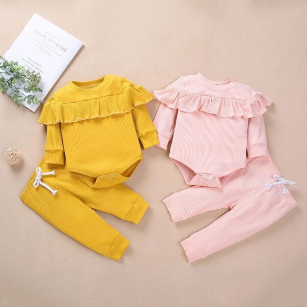 2-piece Solid Bodysuit & Pants for Baby Girl