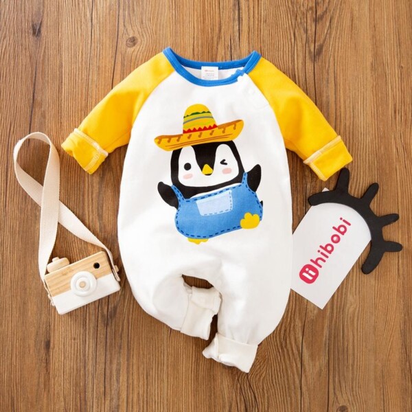 Cartoon Penguin Color Match Jumpsuit for Baby