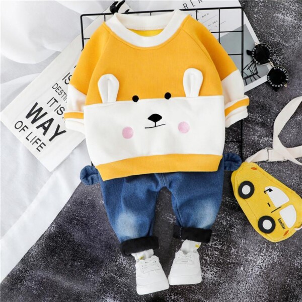 Buy Wholesale 2-piece Bear Pattern Fleece-lined Hoodie & Fleece-lined Jeans for Toddler Boy from China Wholesale, High-quality Baby Boy Sets affordable prices shipping world.