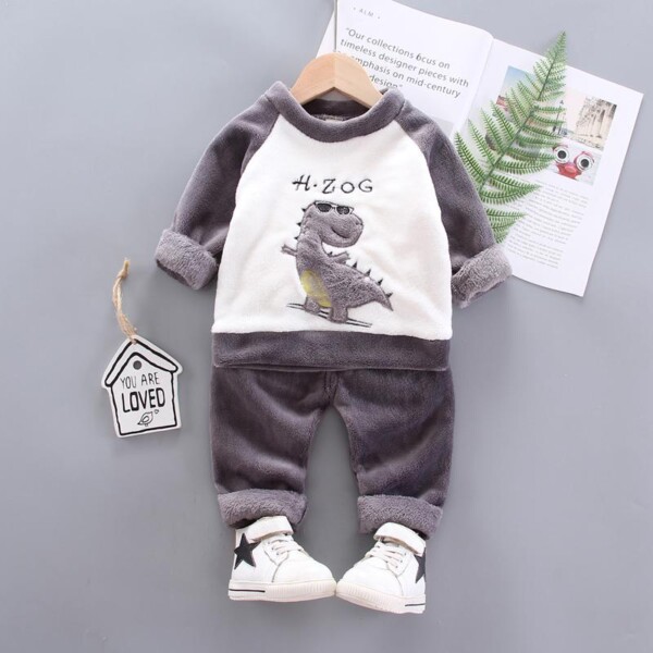 2-piece Winter Thick Dinosaur Pattern Sweatshirts & Pants for Toddler Boy