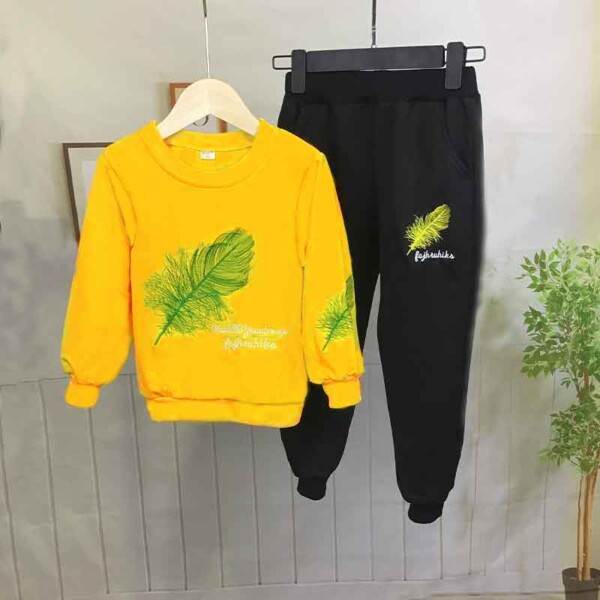 2-piece Feather Pattern Sweatshirt & Pants for Boy