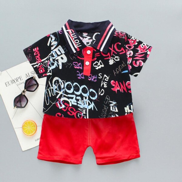 2-piece Letter Pattern Polo Shirt & Shorts for Toddler Boy