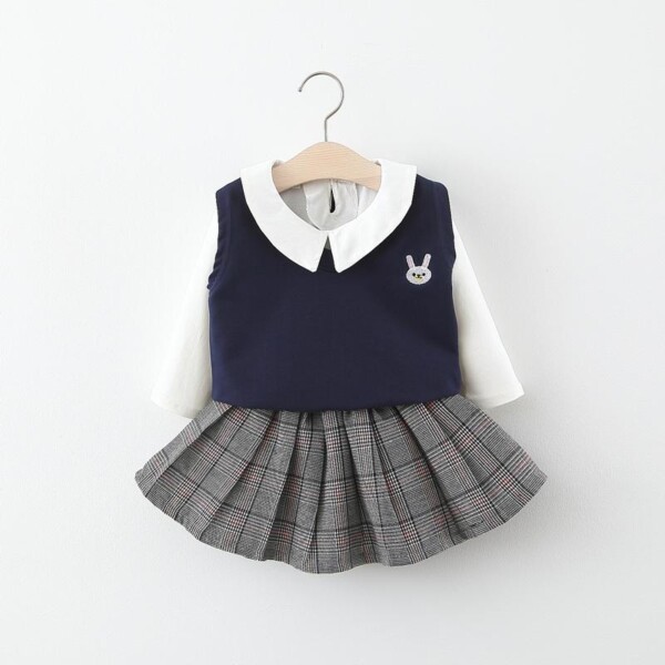 3-piece Vest & Shirt & Pleated Skirt for Toddler Girl