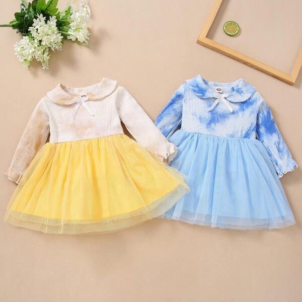 Tie dye Mesh stitching Dress for Toddler Girl