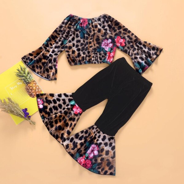 2-piece Leopard Velvet Suit for Toddler Girl
