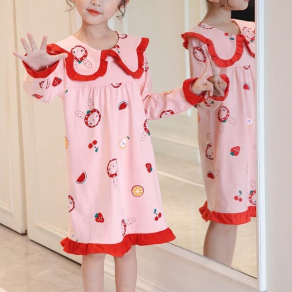 Strawberry Pattern Pajamas Dress for Toddler Girl