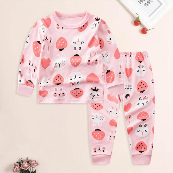 2-piece Strawberry Printed Pajamas for Toddler Girl