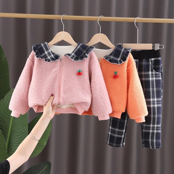 2-piece Fleece-lined Coat & Plaid Pants for Toddler Girl