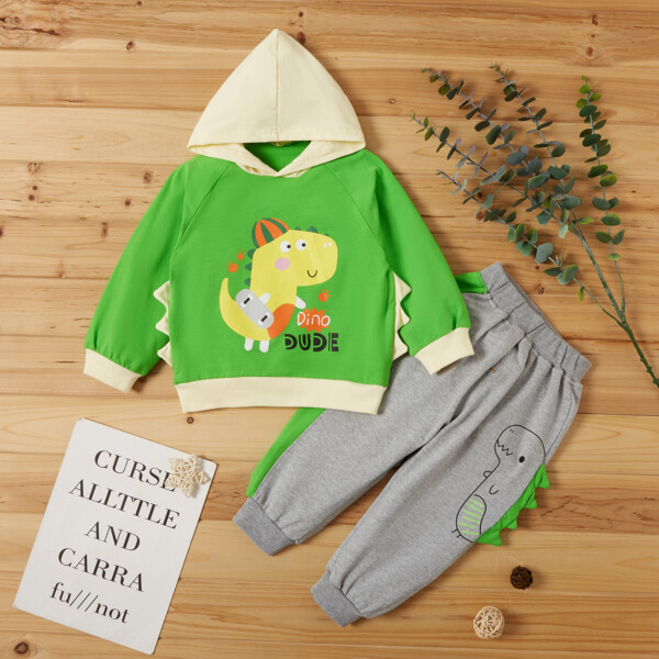 2-piece Baby / Toddler Cute Dinosaur Hooded Long-sleeve Pullover and Pants Set
